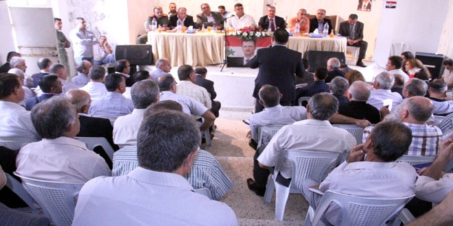 حضر اللقاء رئيس مجلس المحافظة المهندس ياسر ديب وعضو قيادة فرع الحزب مهنا مهنا وفعاليات رسمية وحزبية وأهلية.