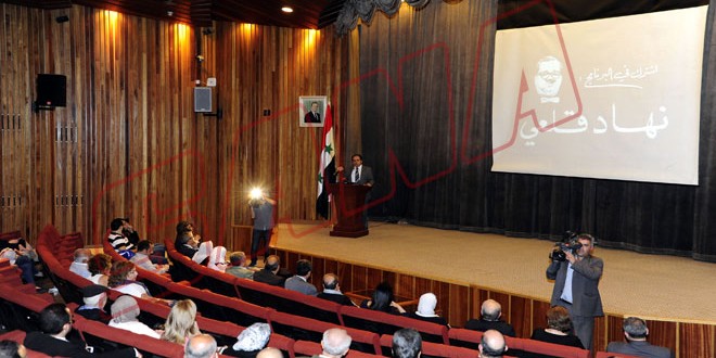 أقامت جمعية أصدقاء دمشق بالتعاون مع مكتبة الأسد الوطنية مساء اليوم حفلا تكريميا للفنان الكبير نهاد قلعي بمناسبة مرور اثنين وعشرين عاما على رحيله تقديرا لمسيرته الفنية الغنية ولأعماله التي ساهمت في إرساء دعائم الدراما السورية وانتشارها وذلك في قاعة المحاضرات بالمكتبة.