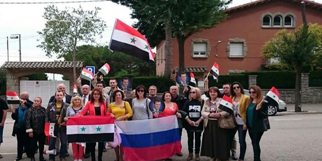 وأكد مواطنون روس مقيمون في برشلونة وقوفهم إلى جانب الشعب السوري وقيادته حتى تحقيق النصر والقضاء على التنظيمات الإرهابية.