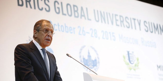 ونقل موقع روسيا اليوم عن لافروف قوله في كلمة ألقاها في مؤتمر الجامعات لمجموعة “بريكس” الذي ينعقد في موسكو اليوم “إن محاولات القيام بالهندسة الجيوسياسية وإسقاط نظم غير مناسبة أدت إلى تعطيل آليات الأمن وتفشي الفوضى وخطر تفكك مختلف الدول واستيلاء الإرهابيين على أراضيها”.