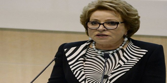 جددت رئيسة مجلس الاتحاد الروسي فالنتينا ماتفيينكو دعوة بلادها الولايات المتحدة والدول الأخرى إلى توحيد الجهود في محاربة تنظيم “داعش” الإرهابي في سورية محذرة من أن أي “مشاركة فعلية للولايات المتحدة في عمليات عسكرية برية في سورية ستشكل انتهاكا صارخا آخر لقواعد القانون الدولي”.