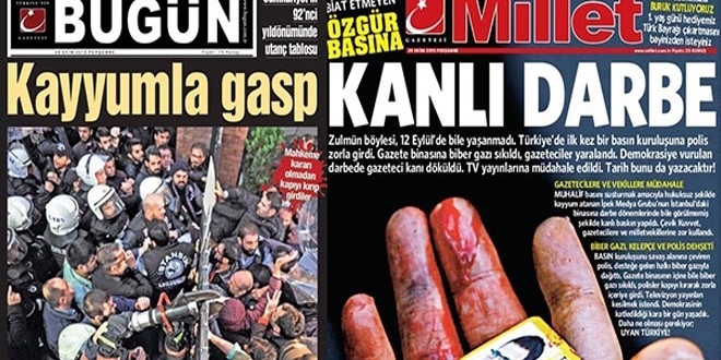 وكانت صحيفة بوغون تخطط لتصدر عنوانا رئيسيا اليوم يقول عملية اغتصاب عبر الأوصياء بينما تحمل صحيفة ملييت عنوان انقلاب دموي ضد الاعلام بعد الممارسات القمعية لنظام أردوغان على محطتي التلفزيون بوجون وقنال ترك.