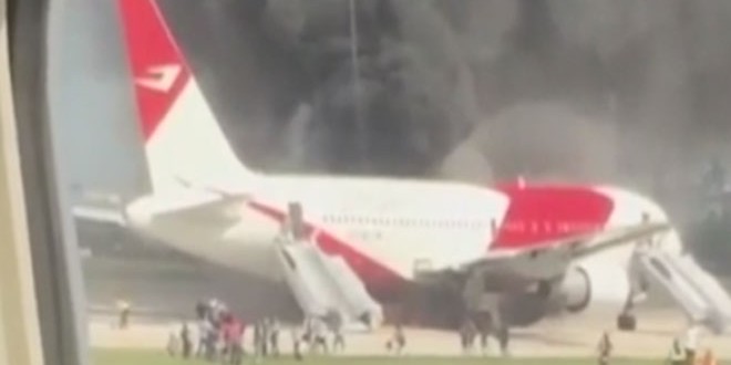 وقال المصدر نفسه انه تم اجلاء الركاب على المدرج بمزالق النجاة.