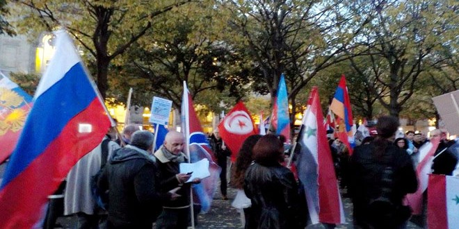 نظمت جمعية فرنسا روسيا مساء أمس مسيرة تضامنية مع سورية وروسيا في حربهما ضد التنظيمات الإرهابية.