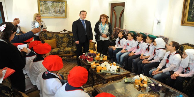 زار اليوم 17 طفلا من منظمة طلائع البعث السفارة الروسية بدمشق لتقديم التعازي بضحايا الطائرة الروسية المنكوبة حاملين معهم الورود وألقوا عبارات باللغتين العربية والروسية باسم أطفال سورية جميعا.