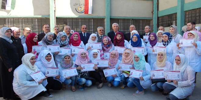 كرمت مديرية تربية حماة اليوم 26 طالبة متفوقة في الشهادة الثانوية العامة بفرعيها العلمي والأدبي للعام الدراسي الماضي وذلك في ثانوية عبد العزيز عدي للإناث بمدينة حماة.