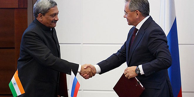 وقع وزير الدفاع الروسي سيرغي شويغو ونظيره الهندي مانوهار باريكار اليوم بروتوكولا من شأنه تطوير التعاون في المجال العسكري التقني بين البلدين.