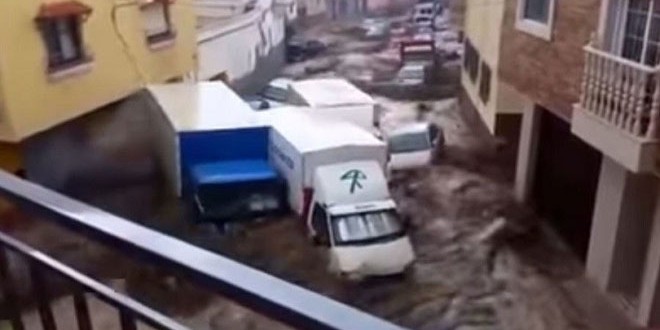 قتل أربعة أشخاص وأصيب خمسة آخرون جراء فيضانات جارفة شمال اسبانيا اليوم.