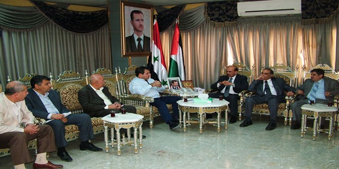 بحث محافظ اللاذقية إبراهيم خضر السالم مع رئيس اتحاد الكتاب العرب الدكتور نضال الصالح اليوم جملة من القضايا المتعلقة بالوضع المادي والأدراي لفرع اتحاد الكتاب العرب في اللاذقية وأهمية دعمه ماديا ومعنويا لتنفيذ المهام الموكلة إليه .