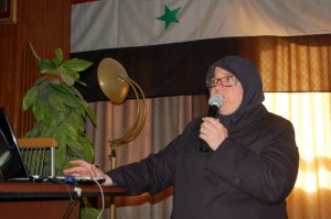 وقدمت الدكتورة روعة سلطان من مديرية صحة حماة شرحا حول مرض سرطان الثدي وتشخيصه وعلاجه الكيماوي والإشعاعي والجراحة التجميلية المتعلقة بالمصابة.