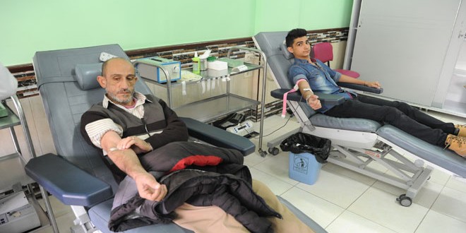 وأكد المشاركون بالحملة أن التبرع بالدم مبادرة بسيطة منهم مقابل ما يقدمه أبطال الجيش العربي السوري على امتداد ساحات الوطن مؤكدين تصميمهم ورغبتهم في المساهمة بإعادة إعمار سورية قوية محصنة وأنهم على استعداد لتقديم الغالي والنفيس في سبيل أن تبقى سورية شامخة منتصرة .