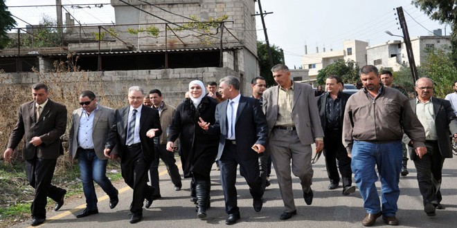 وتضمنت جولة وزيرة الشؤون الاجتماعية زيارة عدد من منازل أسر الشهداء في قرية تارين والاطلاع على اعمال تأهيل وترميم جامع خالد ابن الوليد وكنيسة أم الزنار بمدينة حمص.