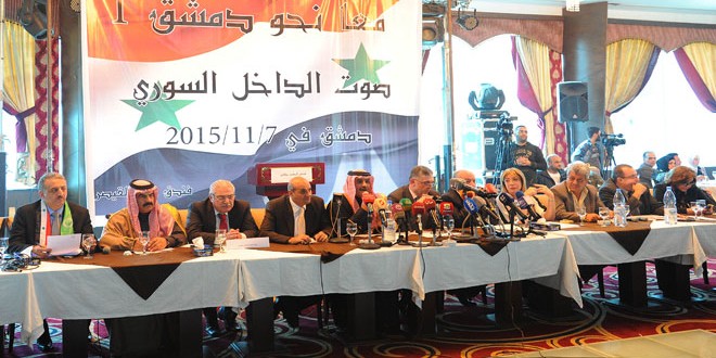 شارك في الملتقى الذي أقيم في فندق قصر القيصر بدمشق عدد من أمناء الأحزاب الوطنية وممثلون عن عشائر سورية وجمعيات أهلية وعدد من أعضاء مجلس الشعب.
