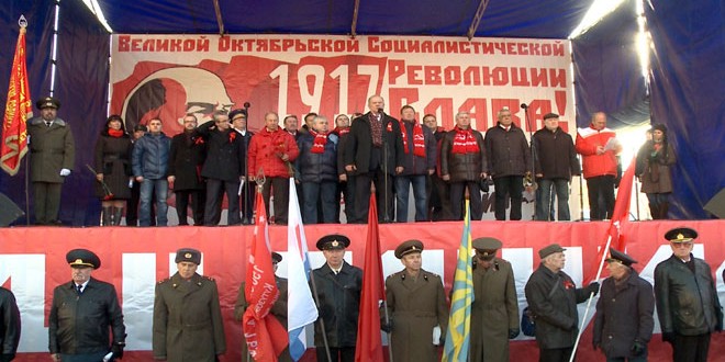 احتشد عشرات آلاف الروس في العاصمة موسكو وغيرها من كبريات المدن والبلدات الروسية اليوم في مسيرات جماهيرية بمناسبة الذكرى الثامنة والتسعين لثورة 17 تشرين الاول الاشتراكية مرددين شعارات وهتافات تحيي ذكرى هذه الثورة وإنجازاتها الكبيرة.