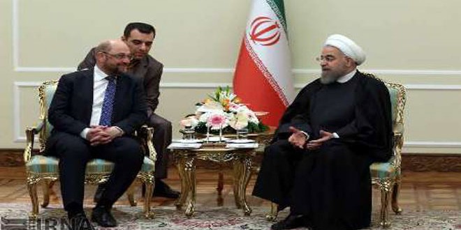 وقال الرئيس روحاني خلال لقائه اليوم رئيس البرلمان الأوروبي مارتين شولتز إن “إيران كانت ضحية الإرهاب وهي تكافحه بعزيمة وبصورة جادة” مضيفا إنه “توجد هناك شكوك حول جدية بعض الدول التي تتشدق بمكافحة الإرهاب لأنه لا يمكن الزعم بمكافحة الإرهاب من جهة والتفرج على النهب وجرائم الإرهابيين من جهة أخرى”.