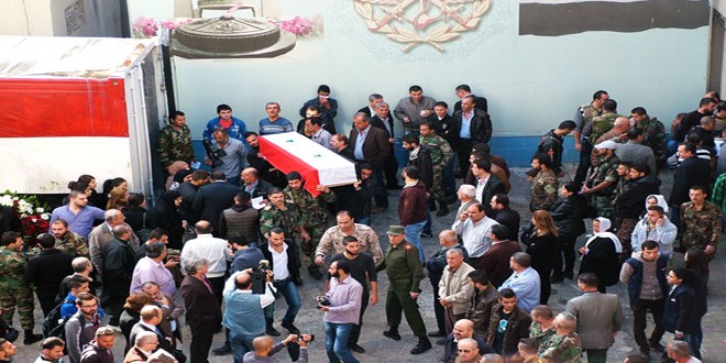 بمشاركة شعبية ورسمية واسعة شيعت من مشفى زاهي ازرق العسكري في مدينة اللاذقية اليوم جثامين الشهداء الذين ارتقوا جراء الاعتداء الإرهابي الذي تعرضت له أحياء سكنية في المدينة أمس.