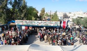 وردد المشاركون الهتافات والأهازيج الوطنية التي حيت تضحيات وبطولات الجيش العربي السوري وانتصاراته المتلاحقة على الإرهابيين.