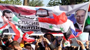 وحمل المشاركون بالوقفة أمام مبنى المحافظة الأعلام الوطنية للبلدين الصديقين ولافتات تعبر عن الشكر للموقف الروسي الذي يدعم إرادة الشعب السوري في نضاله ضد الإرهاب وسعيه للحفاظ على سيادة وطنه ومؤسساته.