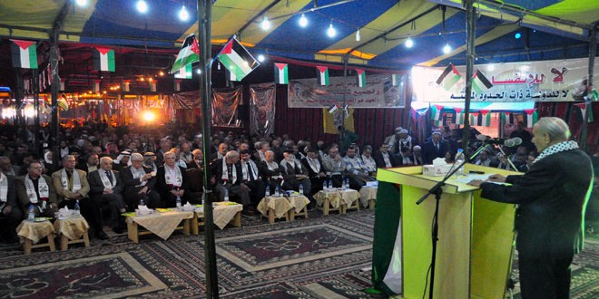 وبدوره تحدث عضو المجلس الثوري لحركة فتح الدكتور سمير الرفاعي أن العدو الصهيوني لا يمكن أن يعرف السلام ولغته الغدر والقتل ويتجلى ذلك في ممارساته العدوانية لافتا إلى أن الانتفاضة الفلسطينية عادت رغم محاولات تغييبها وتجاهل الحقوق المشروعة مشيرا إلى وجود ضغوط من قبل بعض الأطراف العربية والدولية لإيقاف حراك الشعب الفلسطيني داعياً فصائل العمل الوطني الفلسطيني إلى المسارعة في إعادة الاعتبار للوحدة الوطنية وإنهاء الانقسام ومشاركة جميع الفصائل في مواجهة التحديات الراهنة.