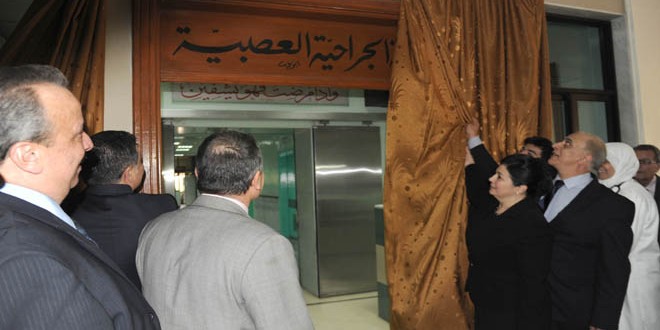وفي تصريح صحفي عقب الافتتاح ذكر وزير التعليم العالي الدكتور محمد عامر المارديني أن افتتاح شعبتي الأمراض النفسية والإنتانية بمساعدة منظمة الصحة العالمية سيسهم في تحسين الخدمات المقدمة للمرضى لافتاً إلى أن تكلفة الافتتاحات بلغت نحو 55 مليون ليرة داعيا لافتتاح مثل هذه الشعب في مختلف المشافي التعليمية.
