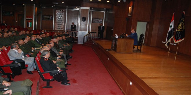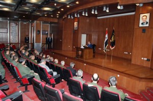 أكد اللواء محمد الشعار وزير الداخلية خلال لقائه اليوم الضباط خريجي دورة تأهيل مسلكية أهمية التأهيل والتدريب العسكري والبدني والمسلكي والحفاظ على القيم والأخلاق ليكون ضباط وعناصر قوى الأمن الداخلي على المستوى الذي يؤهلهم لمواجهة الأخطار والتحديات وخاصة في ظل الأزمة والمؤامرة من بعض القوى العالمية التي تستهدف النيل من موقع سورية وشعبها ومقدراتها ودورها.