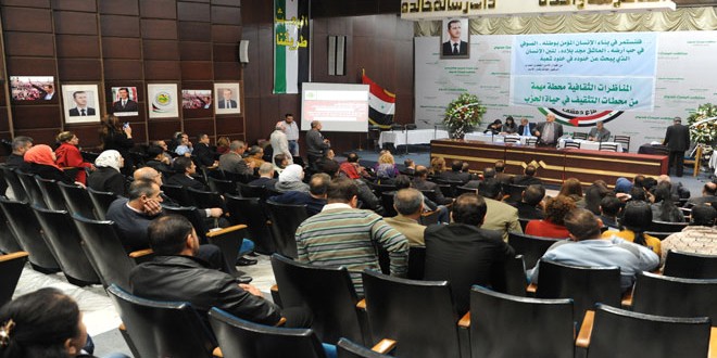 أكد المشاركون في المناظرة الفكرية المركزية التي يقيمها مكتب الإعداد والثقافة والإعلام في القيادة القطرية لحزب البعث العربي الاشتراكي على مستوى الفروع الحزبية في قاعة السابع من نيسان بفرع دمشق للحزب أن ما تتعرض له سورية اليوم من هجمة تكفيرية إرهابية هو بسبب مواقفها العروبية وانتمائها القومي ومبادئها الثابتة حيال مختلف قضايا الأمة العربية.