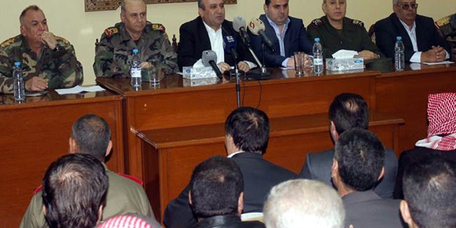 وأكد محافظ ريف دمشق أن الالتحاق بخدمة العلم واجب وطني للدفاع عن أرض الوطن ومحاربة الإرهاب التكفيري الذي يستهدف سورية.