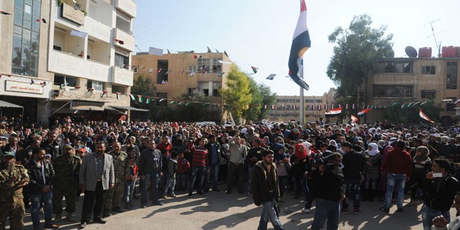 بمناسبة الذكرى الخامسة والأربعين للحركة التصحيحية المجيدة وعودة دفعات جديدة من الأهالي إلى بلدة الحسينية في محافظة ريف دمشق اقامت لجنة المصالحة الوطنية في البلدة احتفالا جماهيريا لتجديد العهد والوفاء للوطن والعمل يدا بيد إلى جانب بواسل الجيش العربي السوري حتى تحرير كامل التراب السوري من براثن الإرهاب .