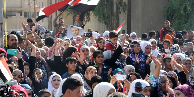 احتفال جماهيري في الحسينية بريف دمشق بذكرى التصحيح وعودة المواطنين