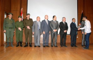 وفي نهاية الافتتاح تم تقديم درع جامعة دمشق لوزير الداخلية إضافة إلى تكريم فريقي العمل والمشاركين في هذا الإنجاز.