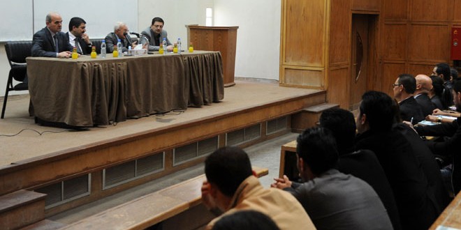 حضر اللقاء عميد كلية الاعلام بجامعة دمشق الدكتور بطرس حلاق وعميد كلية العلوم السياسية الدكتور محمد حسون وعضو قيادة فرع جامعة دمشق لحزب البعث العربي الاشتراكي أيهم حوراني وأعضاء الهيئة التدريسية في كليتي الإعلام والعلوم السياسية وحشد كبير من طلاب الكليتين.