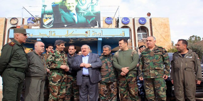 وخلال زيارته اليوم مطار كويرس وتفقده واقع القرى والبلدات في ريف حلب الشرقي التي أعاد اليها بواسل الجيش الامن والاستقرار أشار المحافظ الى أن الصمود “الأسطوري “لحامية المطار وتصديها للمحاولات الفاشلة لاقتحامه من قبل التنظيمات الإرهابية كان بفضل محبة أبطال المطار لوطنهم وقائدهم وإيمانهم العميق بحتمية الانتصار مؤكدا العمل لتأمين جميع احتياجات المطار الخدمية بأسرع وقت ممكن.