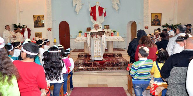 وتضرع كاهن الرعية الأب فادي زيادة في عظته بأن “يحل الله سلامه على بلادنا وأرضنا وكل البشر كما كان يدعو السيد المسيح سيد السلام وأن يحمي وينصر الله السيد الرئيس بشار الأسد وجيشنا الباسل في مواجهة أعداء البلد وهذه الحرب العدوانية الإرهابية التي يتعرض لها وأن يرحم شهداء الوطن من مدنيين وعسكريين الذين ضحوا بدمائهم في سبيل أن يبقى الوطن بسلام وأمان”.