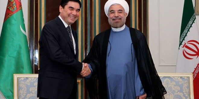بحث الرئيس الايرانى حسن روحانى مع نظيره التركمانى قربان قولى بيردى محمدوف فى طهران اليوم علاقات التعاون بين البلدين ومكافحة الارهاب والمخدرات باعتبارهما من المشاكل الرئيسية فى المنطقة.