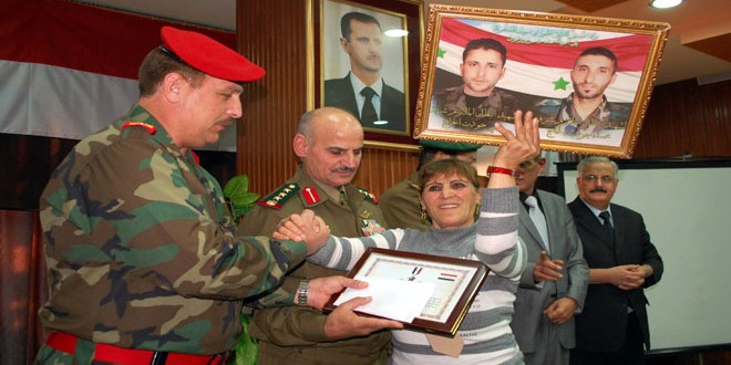 تكريم 35 أسرة من ذوي شهداء وجرحى الجيش في حماة