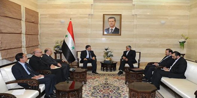 وتناول اللقاء واقع العلاقات الاقتصادية والتجارية والصناعية والدوائية والتنموية وآليات الارتقاء بها وخاصة لجهة تأمين مستلزمات تعزيز صمود الشعب السوري في وجه الحصار الاقتصادي من مواد غذائية وتموينية وأقماح ومشتقات نفطية وغيرها إضافة إلى إمكانيات إقامة مشاريع استثمارية مشتركة ودور الشركات الإيرانية في المساهمة بإعادة البناء والإعمار.