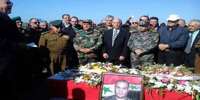 من جانبه أكد اللواء علي خضرة نائب مدير الإدارة السياسية أن الشهيد البطل قدم روحه فداء لوطنه حاملا سلاحه وقلمه معا متفانيا في نقل الحقيقة ووقائع الميدان التي تشهد على انتصارات الجيش العربي السوري لافتا إلى أن الشهيد البطل لم يتأخر يوما عن واجبه وأنه استشهد في أرض المعركة.