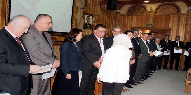 كرمت محافظة طرطوس اليوم 35 طالبا وطالبة من الأوائل في الشهادة الثانوية العامة وشهادة التعليم الأساسي إضافة إلى الفائزين الثلاثة الأوائل بمسابقة الأولمبياد العلمي السوري للمدرسين والموجهين لعام 2015 /.
