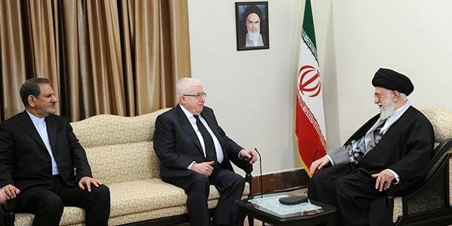 وقال خامنئي خلال استقباله الرئيس العراقي فؤاد معصوم اليوم “بعض دول المنطقة إلى جانب الأجانب يسعون إلى تعميق الاختلافات بين أطياف الشعب العراقي وعلى الشباب العراقي الواعي والمقتدر ألا يخضع للهيمنة الأميركية” مؤكدا أن عراق اليوم وبعزم شعبه العظيم وسواعد شبابه اليقظ يختلف عما كان عليه في السابق بشكل كامل.