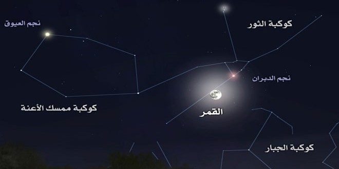 وقال نائب رئيس الجمعية الفلكية السورية المهندس عبد العزيز سنوبرفي تصريح لـ سانا “إنه في الواقع يحدث احتجاب لنجم الدبران خلف القمر لكن الاحتجاب لا يشاهد إلا من كندا والولايات المتحدة الأميركية الشمالية أما في منطقتنا فسوف نكتفي بمشاهدة الاقتران الرائع”.