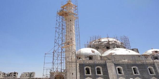 وبالنسبة لأعمال الترميم في جامعي خالد بن الوليد والاوزاعي أوضح حاميش أن أعمال الترميم الحالية تشمل ترميم المآذن والقباب بالتعاون مع وزارة الاوقاف مشيرا إلى أن أعمال الترميم في جامع النوري الكبير تضمنت عزل أسطح مع بعض التدعيمات وترميم أحد الجدران المنهارة للجامع من قبل جمعية أهلية كما يتم ايضا أعمال ترميم وإعادة بناء لمئذنة جامع أبي الفضائل من قبل أحد المتبرعين واعمال ترميم لمئذنة جامع بالتعاون مع مديرية أوقاف حمص بتكلفة مليون ليرة.