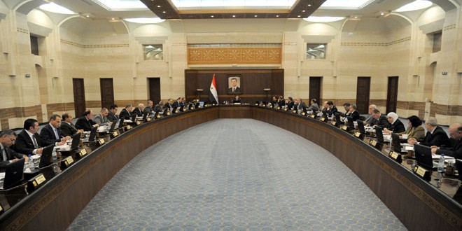 بحث مجلس الوزراء في جلسته الأسبوعية اليوم ملفات خدمية واقتصادية أبرزها آليات تسويق الحمضيات والزيتون وتوزيع مادة المازوت على المواطنين وواقع مخازين الأقماح والدقيق ومياه الشرب في دمشق وريفها والإجراءات المتخذة لتعزيز استقرار الليرة السورية.