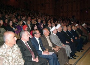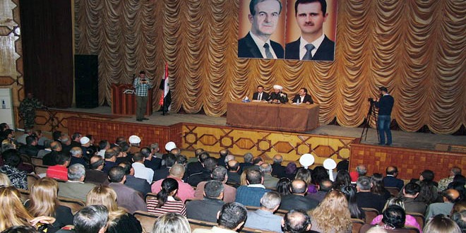 حضر اللقاء محافظ اللاذقية ابراهيم خضر السالم وأمين فرع حزب البعث العربي الاشتراكي في المحافظة الدكتور محمد شريتح ورئيس اتحاد الصحفيين الياس مراد ورئيس جامعة تشرين الدكتور هاني شعبان وأمين فرع الحزب فيها الدكتور صلاح داوود وعدد من أعضاء قيادة فرعي الحزب وعدد من علماء الدين الإسلامي وكوادر الجامعة.