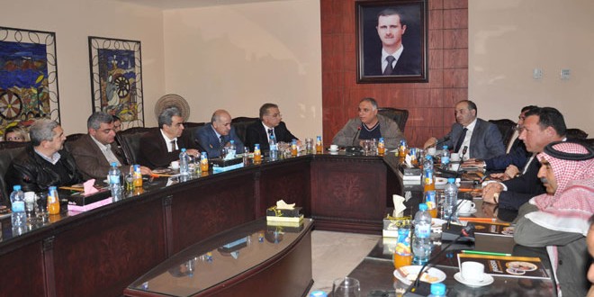 بحث محافظ حمص طلال البرازي مع المستثمرين والصناعيين في المدينة الصناعية بحسياء اليوم واقع الاستثمار والصعوبات التي تواجه عمل المنشآت الصناعية بالمدينة وسبل حلها وخطتها للعام القادم.