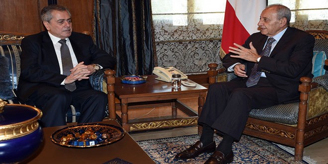 بحث رئيس مجلس النواب اللبناني نبيه بري اليوم مع سفير سورية في لبنان علي عبد الكريم التطورات الراهنة في المنطقة.