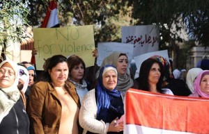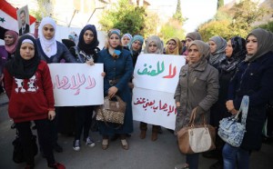 وأكد المشاركون في الاعتصام في بيان سلم إلى الممثل المقيم لبرنامج الأمم المتحدة بدمشق أن المرأة السورية تتعرض منذ خمس سنوات لأشكال مرعبة من العنف النفسي والجسدي نتيجة ممارسات التنظيمات الإرهابية المسلحة فيما يقف المجتمع الدولي موقفا يقتصر على الأدانة لما يحصل من جرائم ضدها.