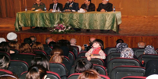 وأكد أنه تم تجنيد آلاف القنوات الإعلامية المغرضة للنيل من سورية لأن أبناءها استطاعوا القول “لا لأموالهم” داعيا الشعب السوري إلى الاستعداد للمرحلة القادمة فكرا وعملا والتصدي لكل من يسيء إلى الوطن والعمل على تربية الأبناء على القيم والأخلاق في مواجهة الإرهاب.