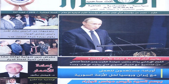 تضمن العدد الجديد من جريدة القرار عددا من المقالات الاجتماعية والسياسية والفكرية والأدبية والنقدية إضافة إلى قراءات في بعض الكتب الشعرية وحوارات تسلط الضوء على الواقع الاجتماعي والخدمي في سورية.