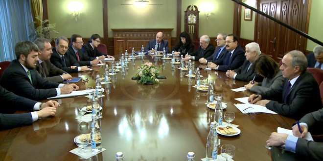 وقال المعلم “من الطبيعي أن يشمل جدول أعمال اللجنة جميع آفاق علاقاتنا بما في ذلك المجالات الاقتصادية والثقافية وخاصة أننا قررنا إعطاء الأولوية في مرحلة إعادة الإعمار لشركات الدول التي وقفت إلى جانب سورية ولا سيما الشركات الروسية”.