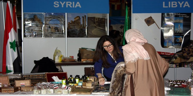 وشهد الجناح السوري المشارك في المعرض إقبالاً وحضوراً مميزاً حيث ضم مجموعة متنوعة من الصناعات التقليدية واليدوية والنسيجية ولوحات تشكيلية وملصقات وصوراً وكتباً أظهرت المعالم الحضارية والثقافية والأثرية لسورية الى جانب بعض المأكولات والحلويات السورية والأطباق الشهية التي كانت محل إعجاب الزائرين والضيوف الذين جابوا المعرض وتجولوا فيه.